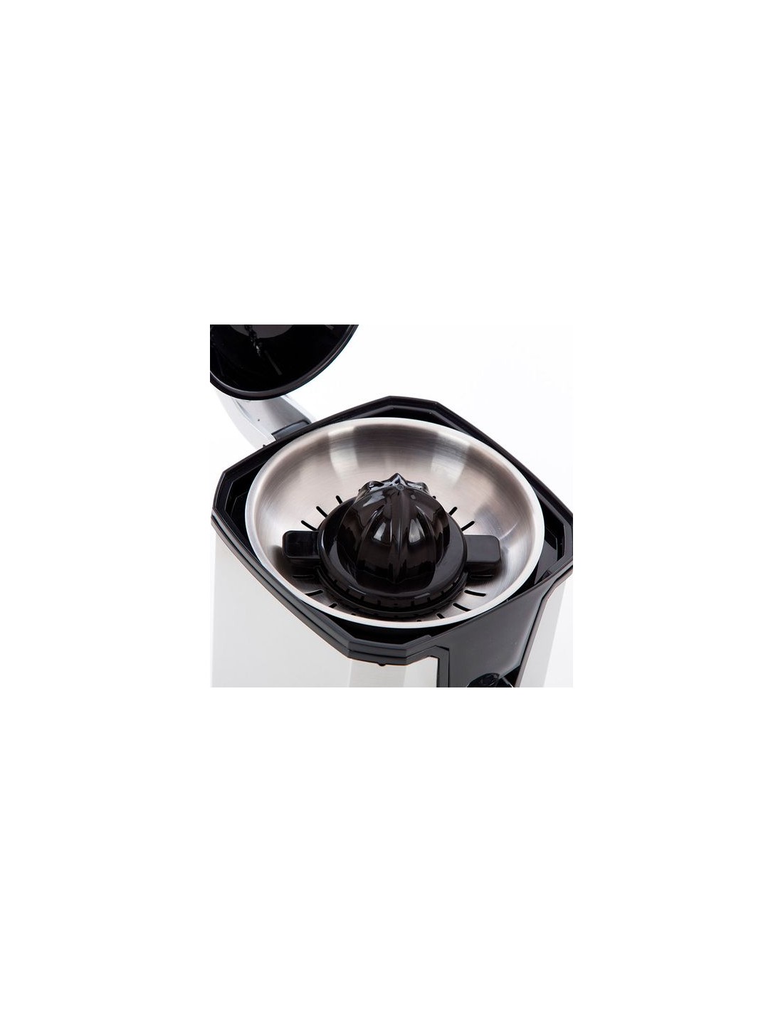 Exprimidor eléctrico con brazo. Cuerpo, filtro y vertedor de acero inoxidable. Motor profesional AC con dos conos exprimidores