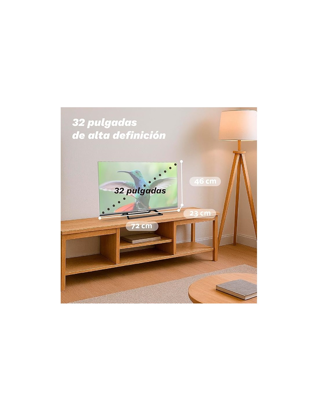 - Pantalla QUANTUM LED: Panel de 32 pulgadas con tecnología QLED que ofrece colores vibrantes y brillantes, resolución HD, ángulo de visión 178º.